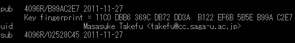 してから,その公開鍵の「鍵指紋(key fingerprint)」を調べます.